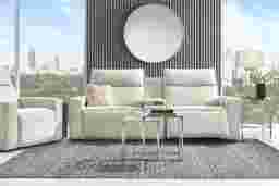 The indulgent luxury of Madison Avenue comes home with sumptuous top grain leather in the dual power ModularTwo, the perfect blend of sophistication and opulent comfort. Our first modular collection featuring top grain leather upholstery where the body touches, this contemporary seating solution is enhanced by welted track arms and tufted back cushions for a look of refined elegance and serenity. Each piece is upholstered on all sides, offering endless opportunities for both reconfiguration as well as individual use. Dual power reclining functionality allows for easy adjustment in the headrest and footrest, providing personalized comfort. The console includes a bluetooth-enabled sound system, retracting cupholders and wireless charging. Select a preconfigured design or visit a showroom to learn about individual components and create the modular solution perfect for your space and style. Includes LAF seat, console and RAF seat. Upholstery: Top grain leather where the body touches and polyurethane fabric sides and backs. Leather is a durable, low maintenance product, however, general regular maintenance is necessary. To keep your leather clean, vacuum it regularly, removing any dust, and clean it with water and a mild non-detergent soap.