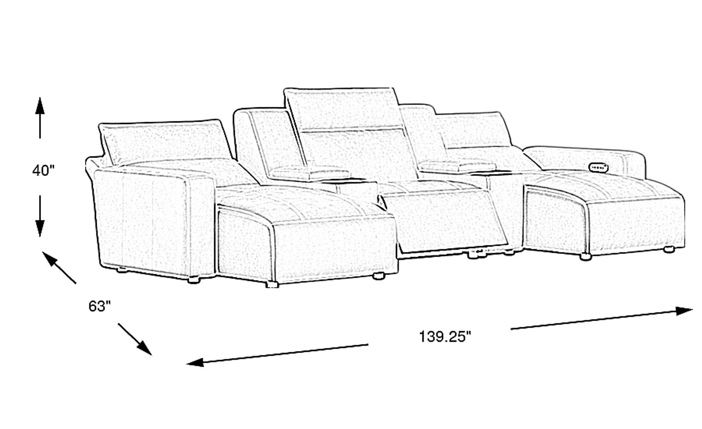 139.25"w x 63.00"d x 40.00"h