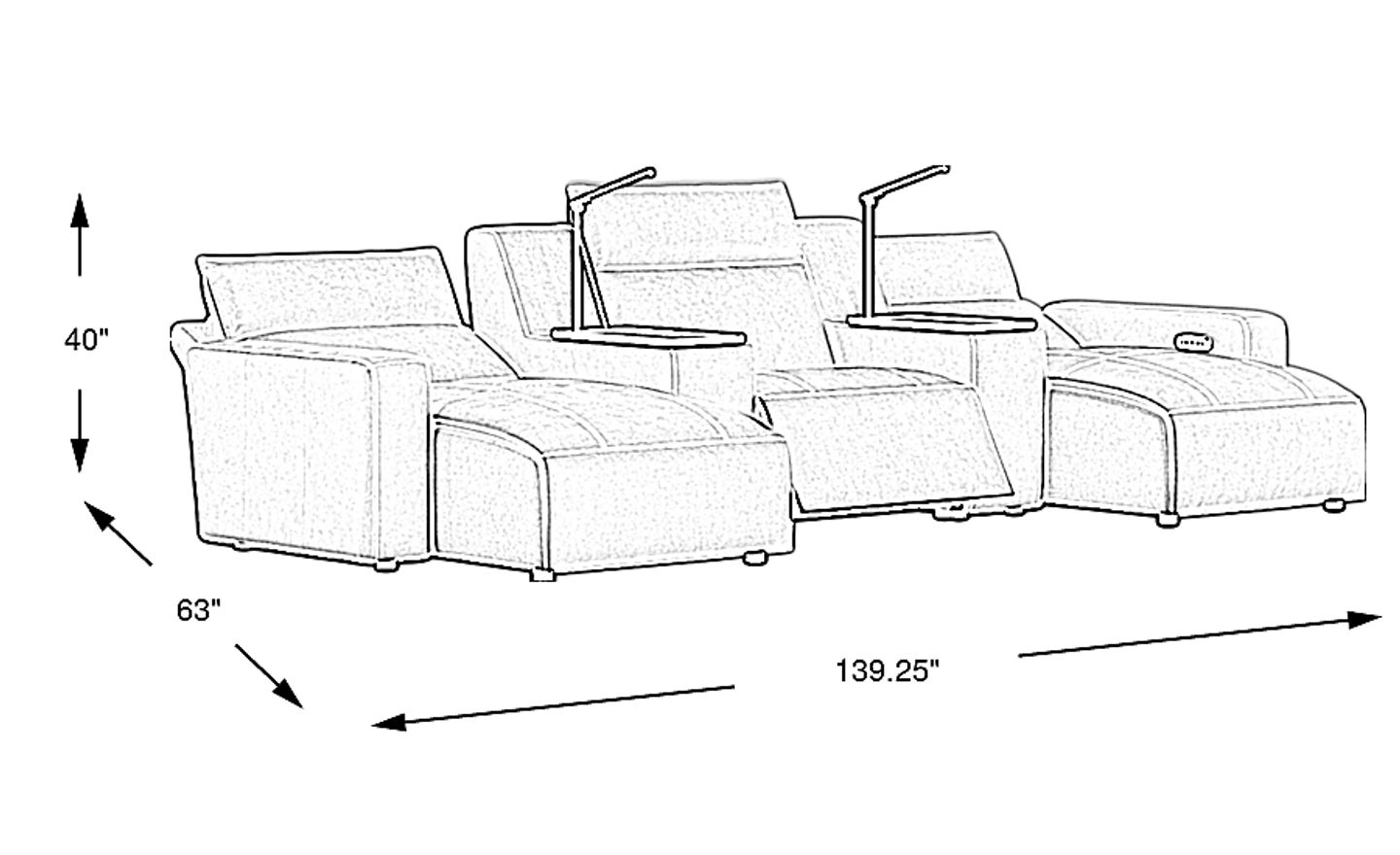 139.25"w x 63.00"d x 40.00"h