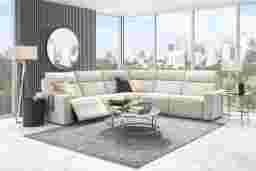 The indulgent luxury of Madison Avenue comes home with sumptuous top grain leather in the dual power ModularTwo, the perfect blend of sophistication and opulent comfort. Our first modular collection featuring top grain leather upholstery where the body touches, this contemporary seating solution is enhanced by welted track arms and tufted back cushions for a look of refined elegance and serenity. Each piece is upholstered on all sides, offering endless opportunities for both reconfiguration as well as individual use. Dual power reclining functionality allows for easy adjustment in the headrest and footrest, providing the ultimate in personalized comfort. Includes LAF seat, stationary armless seat, reclining armless seat, wedge and RAF seat. Upholstery: Top grain leather where the body touches and polyurethane fabric sides and backs. Leather is a durable, low maintenance product, however, general regular maintenance is necessary. To keep your leather clean, vacuum it regularly, removing any dust, and clean it with water and a mild non-detergent soap.