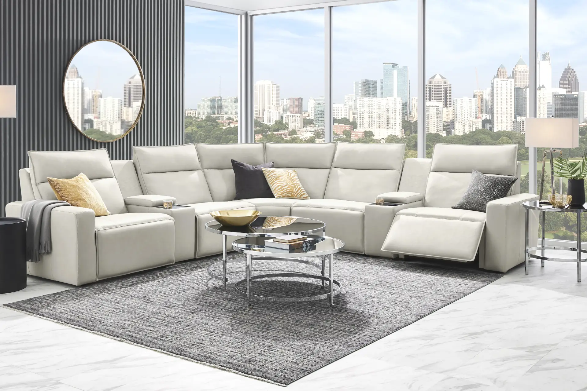 Light Gray Leather 7 Pc Dual Power Reclining Modulartwo With Media Consoles