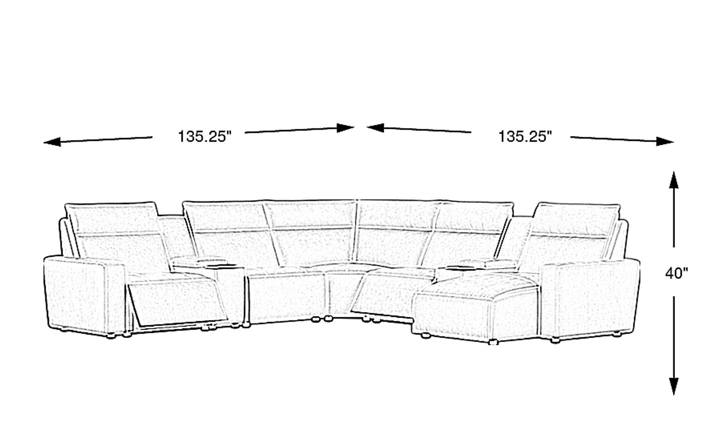 The indulgent luxury of Madison Avenue comes home with sumptuous top grain leather in the dual power ModularTwo, the perfect blend of sophistication and opulent comfort. Our first modular collection featuring top grain leather upholstery where the body touches, this contemporary seating solution is enhanced by welted track arms and tufted back cushions for a look of refined elegance and serenity. Each piece is upholstered on all sides, offering endless opportunities for both reconfiguration as well as individual use. Dual power reclining functionality allows for easy adjustment in the headrest and footrest, providing personalized comfort. Each console includes a bluetooth-enabled sound system, retracting cupholders and wireless charging. Select a preconfigured design or visit a showroom to create the modular solution perfect for your space. Includes RAF chaise, stationary armless seat, reclining armless seat, wedge, 2 media consoles and LAF seat. Upholstery: Top grain leather where the body touches and polyurethane fabric sides and backs. Leather is a durable, low maintenance product, however, general regular maintenance is necessary. To keep your leather clean, vacuum it regularly, removing any dust, and clean it with water and a mild non-detergent soap.