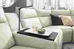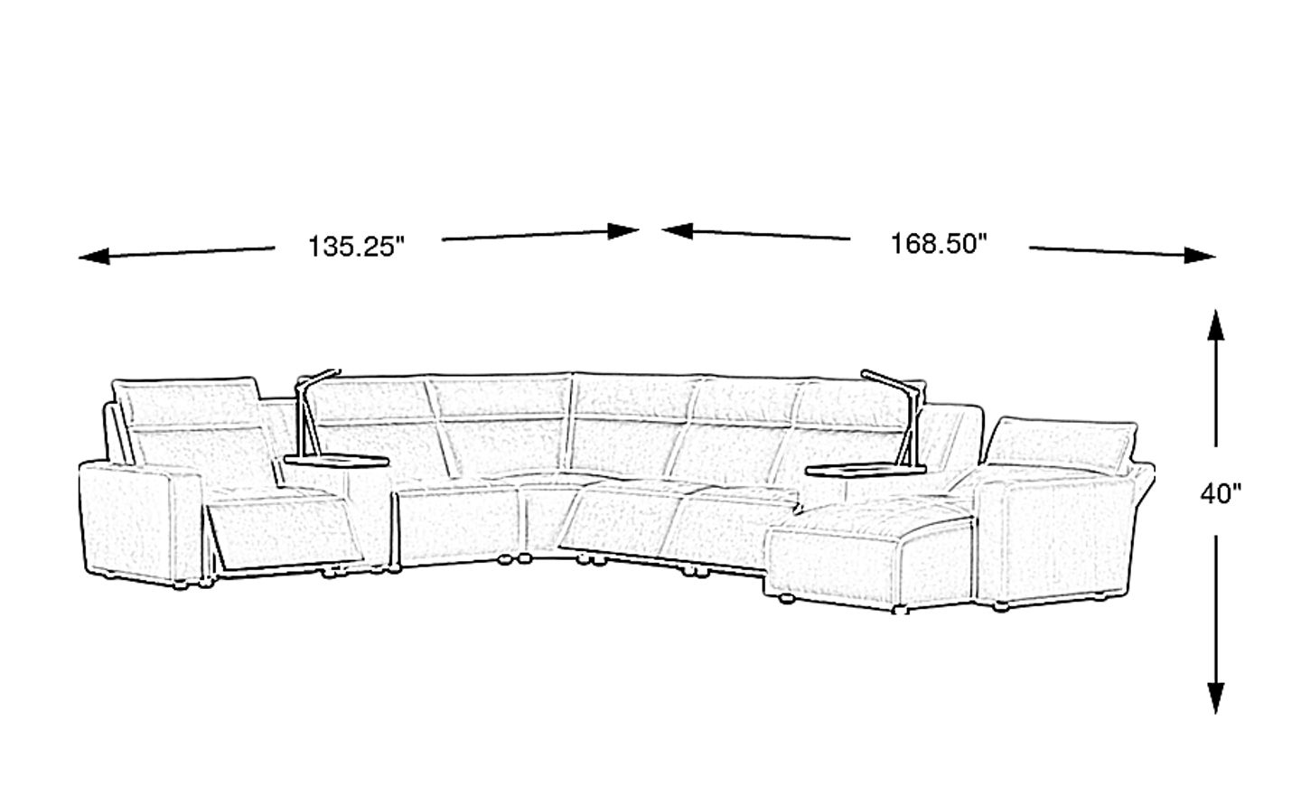 The indulgent luxury of Madison Avenue comes home with sumptuous top grain leather in the dual power ModularTwo, the perfect blend of sophistication and opulent comfort. Our first modular collection featuring top grain leather upholstery where the body touches, this contemporary seating solution is enhanced by welted track arms and tufted back cushions for a look of refined elegance and serenity. Each piece is upholstered on all sides, offering endless opportunities for both reconfiguration as well as individual use. Dual power reclining functionality allows for easy adjustment in the headrest and footrest, providing personalized comfort. Each console includes a touch-activated reading light and swivel-top wood table with hidden storage for easy access to lounging essentials. Select a preconfigured design or visit a showroom to create the modular solution perfect for your space. Includes LAF seat, 2 reclining armless seats, stationary armless seat, 2 consoles, wedge and RAF chaise. Upholstery: Top grain leather where the body touches and polyurethane fabric sides and backs. Leather is a durable, low maintenance product, however, general regular maintenance is necessary. To keep your leather clean, vacuum it regularly, removing any dust, and clean it with water and a mild non-detergent soap.