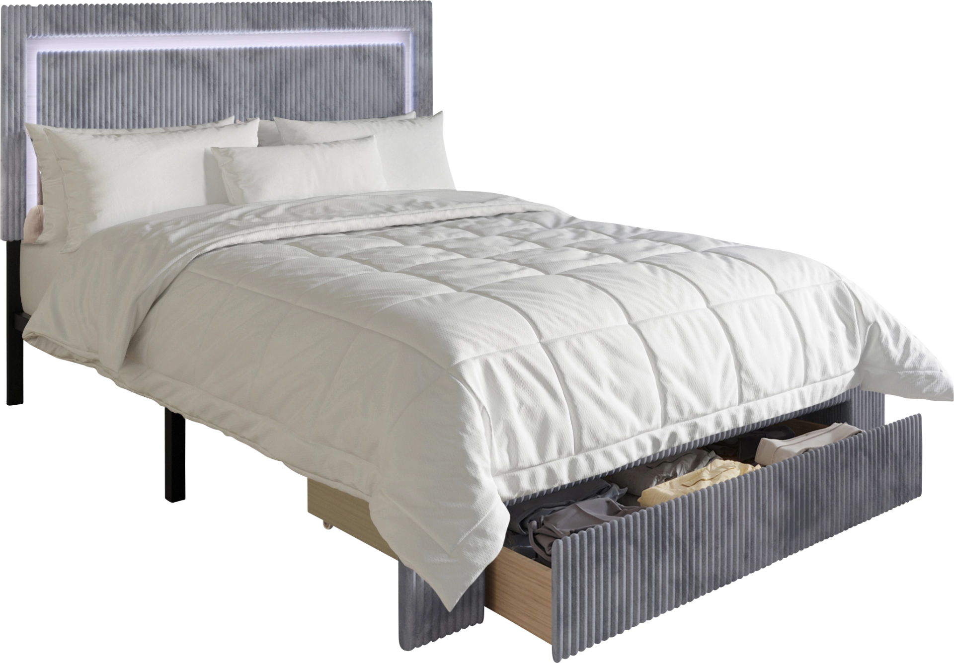 This bed requires customer assembly and includes all necessary hardware and instructions. Due to the oversized nature of the storage drawer and the integrated LED components in the headboard, we recommend a two-person assembly. This ensures the frame is perfectly leveled and the drawer tracks are aligned for the smoothest possible operation.