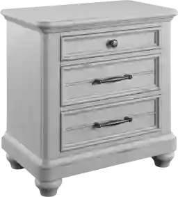 This nightstand is designed for maximum bedside organization with three full-sized drawers. This configuration is particularly beneficial for those who prefer a clutter-free tabletop, providing ample room for electronics, reading materials, and personal items.