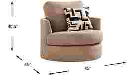 Measuring 45 inches in both width and depth, this is an oversized "chair and a half" designed for significant presence and comfort. Its rounded, sculptural silhouette makes it an excellent focal point for larger living rooms or open-concept floor plans common in newer homes. To ensure a perfect fit, we recommend allowing at least 12–15 inches of clearance around the base to accommodate the smooth 360-degree swivel rotation without obstruction.