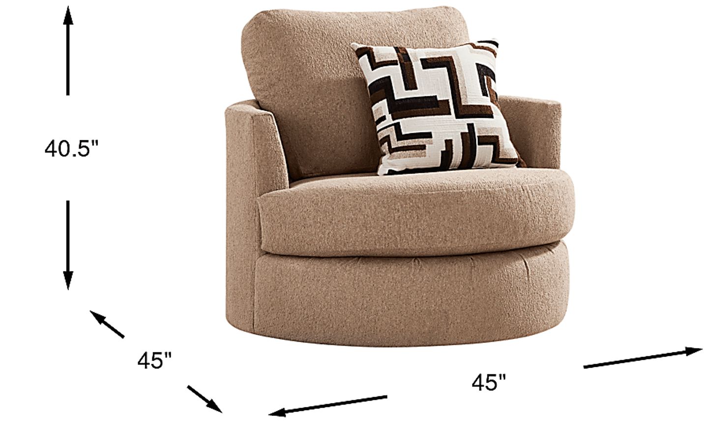 Designed to draw you in from every angle, this Lincoln Park swivel chair delivers sculptural style with sink-in comfort. Plush latte chenille upholstery wraps the rounded silhouette in softness, while its generously cushioned seat and supportive back create a cozy spot made for lingering. A smooth swivel base adds effortless movement, making it easy to turn toward conversation or relax into the moment. Upholstery: 100% Polyester