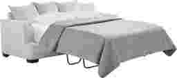 Thoughtful composition meets beautiful balance in the Lincoln Park sleeper sofa. Upholstered in plush off-white chenille, this piece delivers a soft, comfortable feel while maintaining a welcoming, elevated presence. Welted seams throughout add a tailored finish and stylish flare arms enhance the sofa's contemporary silhouette. Nestled away for guests staying the night, the Sealy queen-size sofa mattress offers a comfortable resting area to transform your living room into a spare sleep space. Coordinating jacquard accent pillows are included, adding texture and visual interest. Upholstery: 100% Polyester