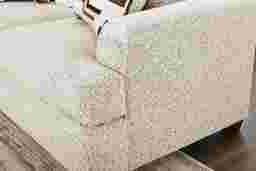 This sofa is upholstered in 100% polyester chenille, a material specifically chosen for its balance of plush softness and long-term durability. Polyester is a resilient synthetic fiber that is naturally more resistant to pilling and wear than many natural blends. Based on our furniture-care expertise, this tight-weave fabric is well-suited for high-traffic living rooms, though the off-white color is best maintained with regular vacuuming and prompt attention to spills.