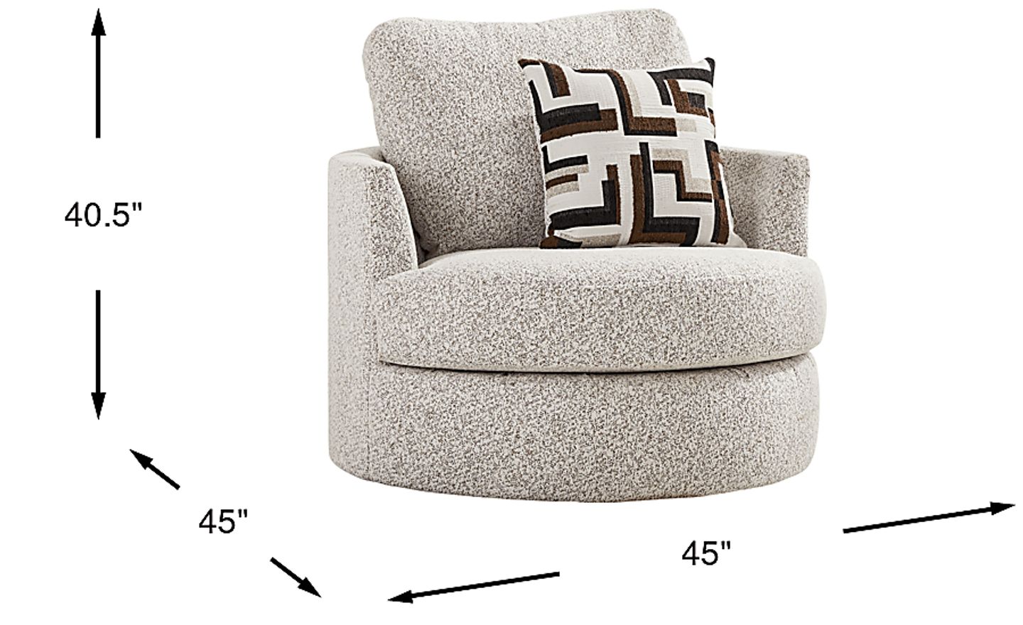 Measuring 45 inches in both width and depth, this chair is an "oversized" or barrel-style seat, often referred to as a chair-and-a-half. Its generous scale makes it a perfect focal point for a large open-concept living room or a dedicated reading nook. However, for those in urban apartments or smaller condos, we recommend measuring your floor plan carefully, as its 45-inch circular footprint requires more space than a standard stationary accent chair to allow for its 360-degree swivel movement.