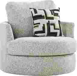 Designed to draw you in from every angle, this Lincoln Park swivel chair delivers sculptural style with sink-in comfort. Plush off-white chenille upholstery wraps the rounded silhouette in softness, while its generously cushioned seat and supportive back create a cozy spot made for lingering. A smooth swivel base adds effortless movement, making it easy to turn toward conversation or relax into the moment. Upholstery: 100% Polyester
