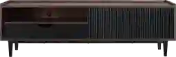 Embodying the perfect fusion of industrial chic and mid-century modern aesthetics, the Lindall black console showcases sleek iron legs and elegant wood frames, creating an undeniable statement of style and sophistication. With their bold yet refined design, these pieces effortlessly blend the raw, utilitarian charm of industrial elements with the timeless allure of mid-century craftsmanship, elevating any space with an unmistakable sense of character and flair. Customer assembly is required.
