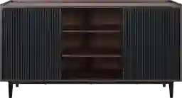 This sideboard is designed for maximum utility, featuring two doors that open to reveal three spacious shelves. This configuration is ideal for organizing various household items, from heavy ceramic serving platters and fine glassware to table linens and board games. The enclosed cabinet style allows you to keep your space tidy by concealing clutter behind its sleek black doors.