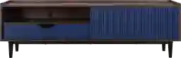 Embodying the perfect fusion of industrial chic and mid-century modern aesthetics, the Lindall navy console showcases sleek iron legs and elegant wood frames, creating an undeniable statement of style and sophistication. With their bold yet refined design, these pieces effortlessly blend the raw, utilitarian charm of industrial elements with the timeless allure of mid-century craftsmanship, elevating any space with an unmistakable sense of character and flair. Customer assembly is required.