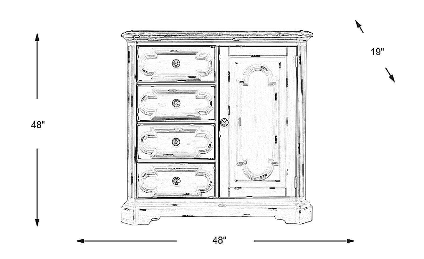 Boasting practical storage options, the Lindenwood bureau provides functionality with a sense of shabby chic charm. The transitional piece offers four drawers made with English dovetail joints for strength and stability. Two adjustable shelves are concealed behind the door. Made with wood solids and Mindi veneers on the top, this charming bureau has a vintage look thanks to textured white paint with brushed glazing and chip-away edges. The contrasting top and wooden knobs are rendered in a distressed wire brushed gray-brown finish.