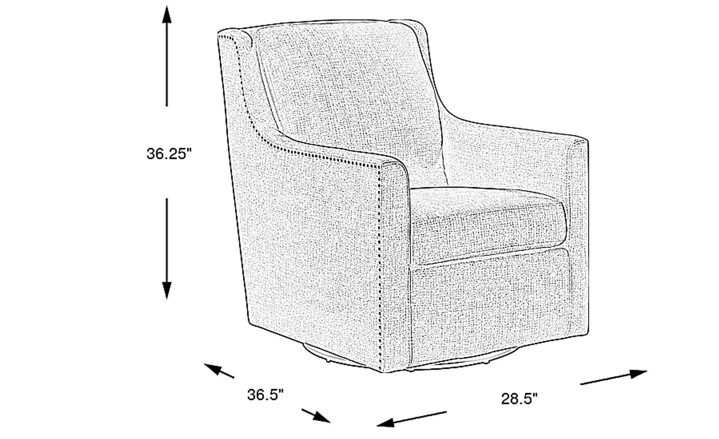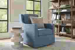 From cocktail hour in the den to reading before bed, is there a more stylish accent for your favorite room than the Lindsey swivel chair? Upholstered with soft woven fabric, the lush blue color of this piece is complimented by handsome flare arms. No matter if they catch your eye from the left or right, ornate silver polished nail head accents on each side of the chair add a captivating detail. You can even flip, reverse or remove the chair's plush seat cushion. The base, with a pivot motion feature, can swivel in a 360-degree rotation. Upholstery: 100% Polyester.