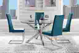Linton Park Silver 5 Pc Round Dining Set With Blue Chairs