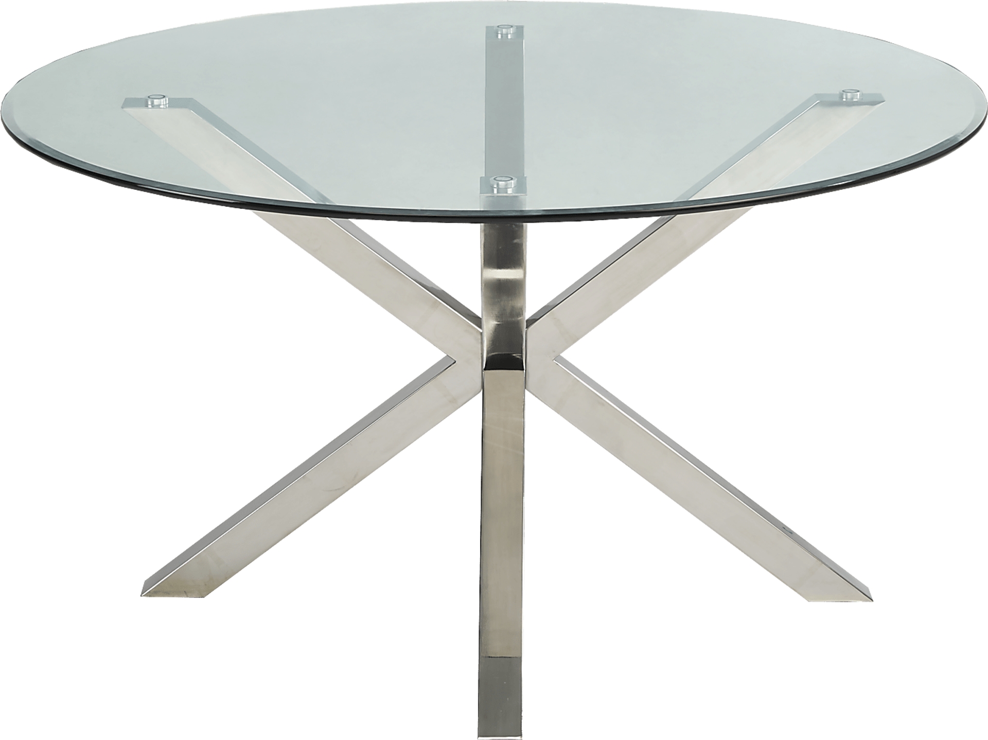 Sleek contemporary dining at its finest, the Linton Park dining table features a stunning 48-inch round glass top and a striking chrome intercrossed base that adds a beautiful modern look.
