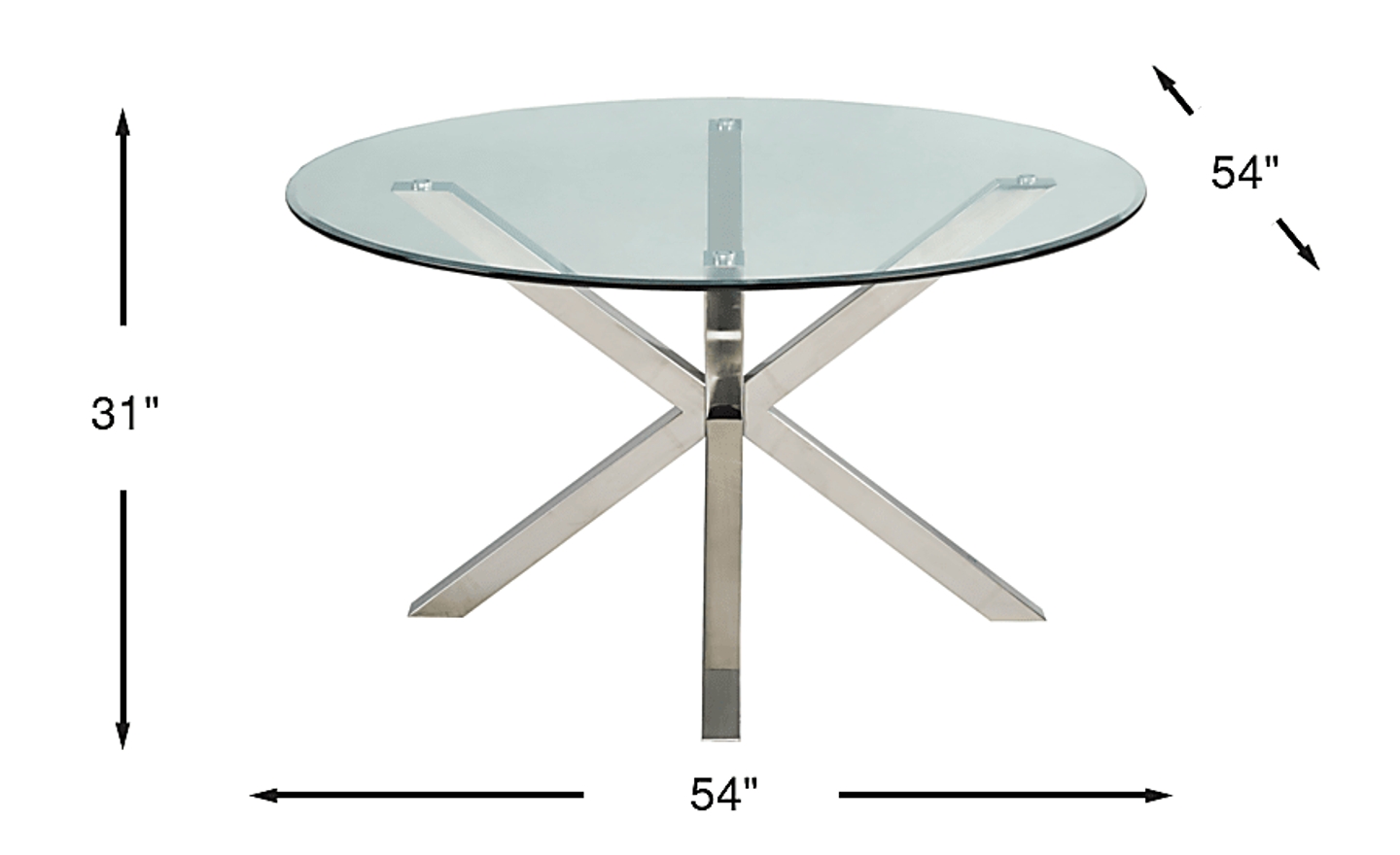 Featuring an elegant 54-inch round one-inch beveled glass tabletop, the Linton Park dining table offers a sleek contemporary aesthetic that serves as the focal point of your dining space. The architectural chrome finished base creates a stunning modern look that doubles as a work of art.