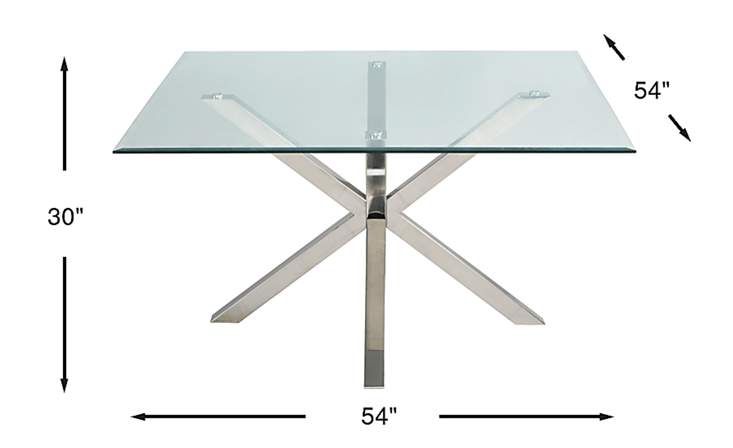 Featuring an elegant 54-inch square glass tabletop with a one-inch bevel, the Linton Park dining table offers a sleek contemporary aesthetic that serves as the focal point of your dining space. The architectural chrome-finished base creates a stunning modern look that doubles as a work of art.