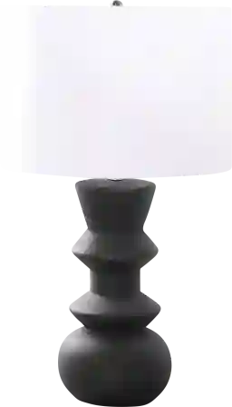 Add a touch of elegance to your living space with the Lionbeat Black Lamp. The unique cream ceramic textured finish base adds character and charm, while the chic, ivory fabric shade softly diffuses the light to create a warm ambiance, perfect for brightening any room. Quick and easy to assemble, this fashionable contemporary lamp is ideal in an office, living room, or bedroom to enhance your decor. Partial assembly may be required.