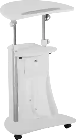 This sit-to-stand cart is designed for ergonomic flexibility, featuring a height-adjustable tabletop that ranges from 31.5 to 45.5 inches. Using the integrated twin knobs, you can easily modify the height to transition between sitting and standing throughout your workday. Additionally, the main panel tilts to your preferred angle and includes a built-in safety edge-stopper to prevent your device from sliding.