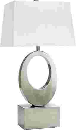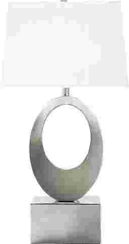 Sleek, elegant and modern, the Lisa lamp adds a refined touch to any living space. Fluid curved lines meet crisp, 90 degree angles on the lamp's brushed nickel base for a refreshingly chic aesthetic. Nicely balanced by a hard backed white rectangular shade, this lamp takes a 100 Watt maximum standard bulb and features a 3 way socket.