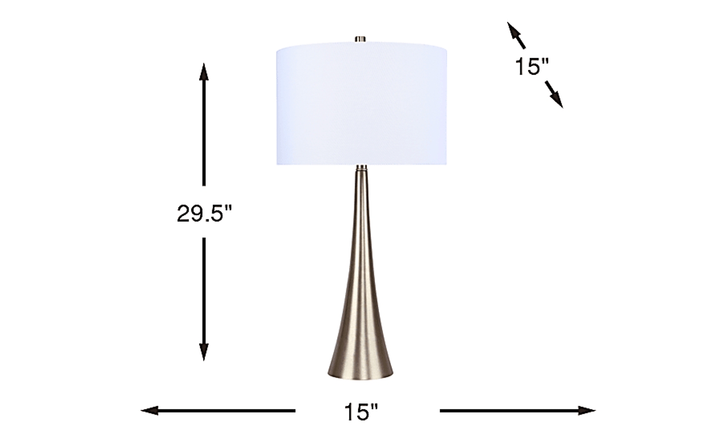 Balancing chic contemporary flair with sleek minimalism, the Lisera Street table lamps illuminate your space with modern elegance. Each lamp is crafted from metal in a champagne finish that is nicely complemented by the off-white shade. Each lamp, with a three-way switch, can accommodate up to a 100-watt bulb (not included).