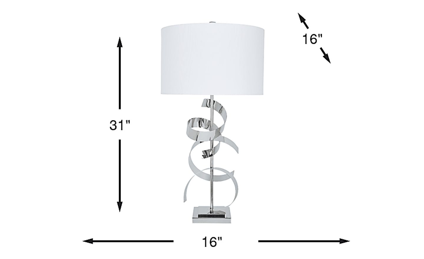 The stylish set of two Listona table lamps brings a touch of contemporary flair to any space. Featuring a silver base with a polished chrome finish, the spiral design adds to the sleek look. Topped with a white drum shade, these lamps can accommodate one 150 watt max bulb each and are operated by a 3-way switch.