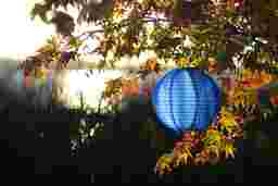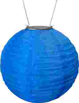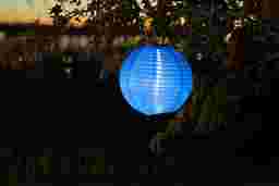 The Lita Blue Outdoor Solar Lantern turns on to glow without the hassle of electrical cords. This elegant yet festive solar lantern accordion-opens to a 10" round globe. It collects sunlight all day, and automatically turns on at dusk to cast a beautiful glow by night. This solar lantern is handmade, constructed of heavy-duty nylon for outdoor use, and is equipped with two high-powered white colored LED bulbs. Also included are a stainless-steel hanging handle, one AAA rechargeable battery, a photo light sensor, and an on/off power switch. An alligator clip is included, enabling easy clip on/off hanging. The solar lantern comes with a base unit accessory, which converts the lantern into a tabletop unit. Allow solar lantern to charge one full day in direct sunlight prior to use. Customer assembly required.