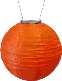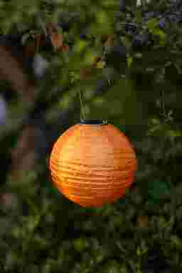 The Lita Orange Outdoor Solar Lantern turns on to glow without the hassle of electrical cords. This elegant yet festive solar lantern accordion-opens to a 10" round globe. It collects sunlight all day, and automatically turns on at dusk to cast a beautiful glow by night. This solar lantern is handmade, constructed of heavy-duty nylon for outdoor use, and is equipped with two high-powered white colored LED bulbs. Also included are a stainless-steel hanging handle, one AAA rechargeable battery, a photo light sensor, and an on/off power switch. An alligator clip is included, enabling easy clip on/off hanging. The solar lantern comes with a base unit accessory, which converts the lantern into a tabletop unit. Allow solar lantern to charge one full day in direct sunlight prior to use. Customer assembly required.