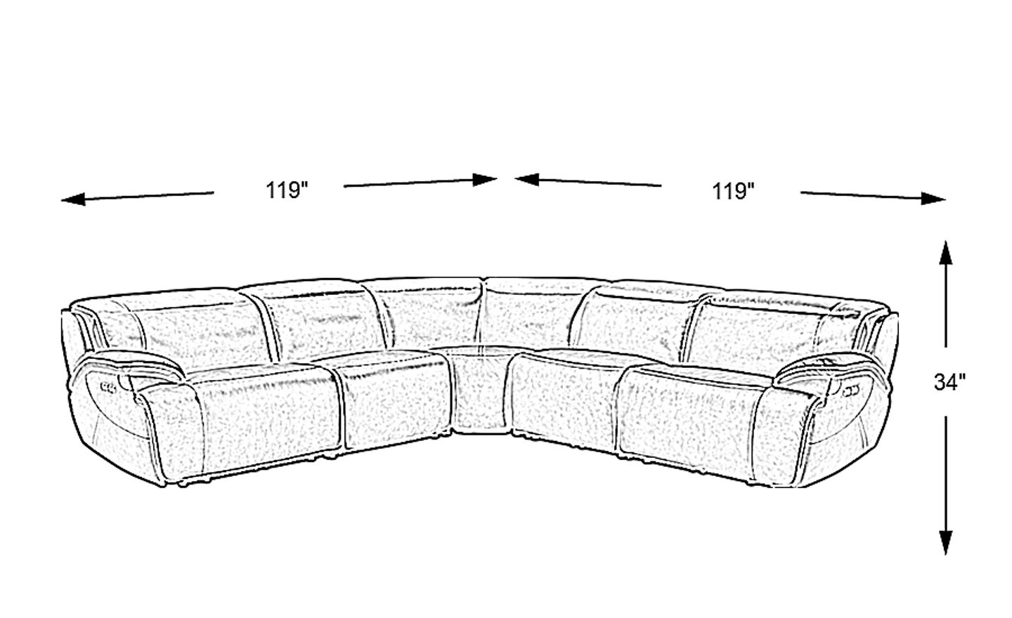 119"w"w x 132"d"d x 34"h"h