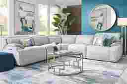 Create a lounge-worthy living room setup your friends and family will love with the stylish Livata sectional. Upholstered in gray-colored top grain leather where the body touches, this spacious piece features padded arms for additional comfort. It's dual power reclining system allows you to adjust the headrest and footrest to your desired position, allowing you to truly customize your lounging experience. Upholstery: Top grain leather where the body touches and vinyl sides and backs.