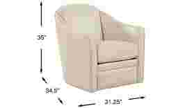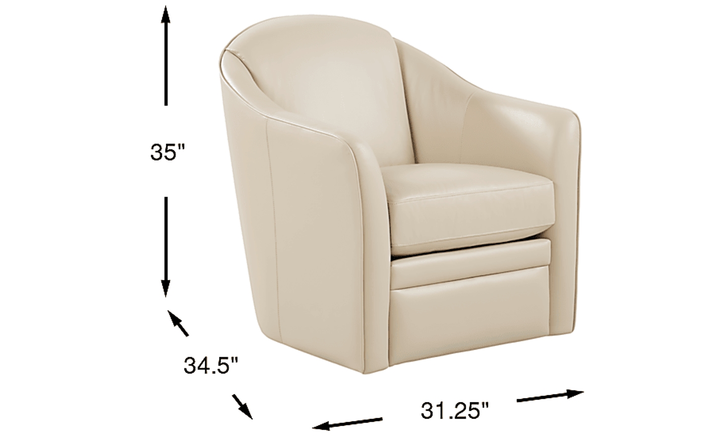 Neutral beige top grain leather where the body touches and swivel capabilities make the Livorno chair an inviting place to relax or enjoy a good conversation. The contemporary curved shape, a comfortable seat cushion and sleek arms offer all the ingredients you need for stylish seating. Top Grain Leather Where the Body Touches and Blended Leather (Polyurethane fabric blended with leather particles) sides and backs.