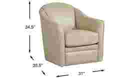Neutral stone beige top grain leather where the body touches and swivel capabilities make the Livorno chair an inviting place to relax or enjoy a good conversation. The contemporary curved shape, a comfortable seat cushion and sleek arms offer all the ingredients you need for stylish seating. Top grain leather where the body touches and blended leather (polyurethane fabric blended with leather particles) sides and backs.
