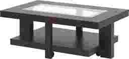 Sleek lines and mixed materials give the Lochlin cocktail table a distinctly modern aesthetic that will transform your living space. Made of birch solids and veneers in a dark walnut finish, this contemporary table features a beveled glass insert on the tabletop, creating a nice balance of dark and light. Hidden castor wheels make moving this table a simple task.