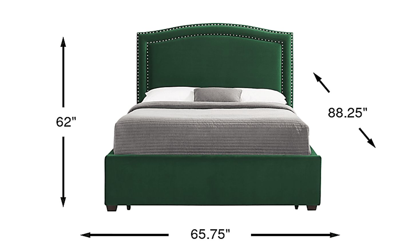 To keep the green upholstery looking vibrant, our care guide recommends regular maintenance using a soft cloth to dust the headboard and frame. For spot cleaning, we suggest lightly applying a mixture of warm water and mild soap or a light detergent. Always blot spills immediately with a dry, clean cloth to prevent moisture from soaking into the padding. Avoid using harsh chemicals or abrasive cleaners, as they can damage the fabric finish and the double row of nailhead trim.