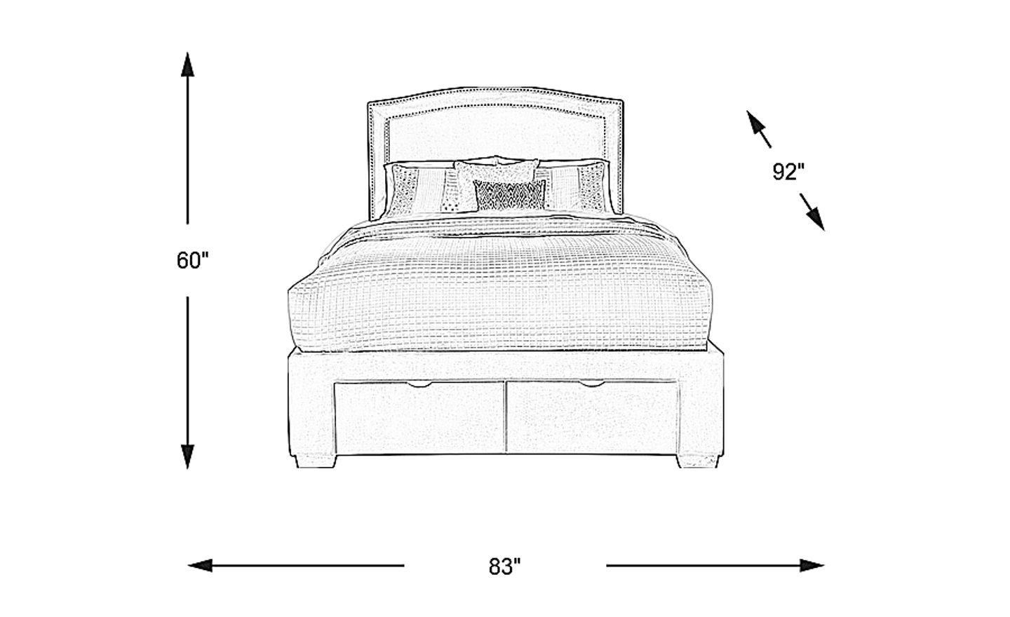 A classic design and sophisticated silhouette make the Loden queen bed a wonderful addition to your bedroom. Navy colored upholstery is accented with a double row of nailheads along the headboard, bringing a subtle dose of glamour and a clean look that remains timelessly elegant. Two drawers on the footboard enhance its storage capabilities. 100% polyester. Mattress only- No boxspring/foundation required. Bed shown is queen size.