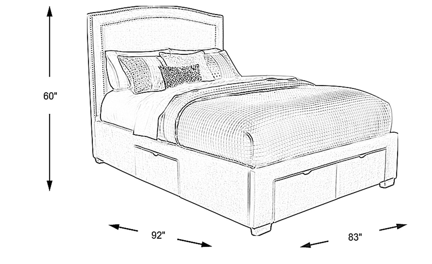 A classic design and sophisticated silhouette make the Loden queen bed a wonderful addition to your bedroom. Navy colored upholstery is accented with a double row of nailheads along the headboard, bringing a subtle dose of glamour and a clean look that remains timelessly elegant. Four drawers on the footboard and side rails - add storage capabilities. 100% polyester. Mattress only- No boxspring/foundation required. Bed shown is queen size.