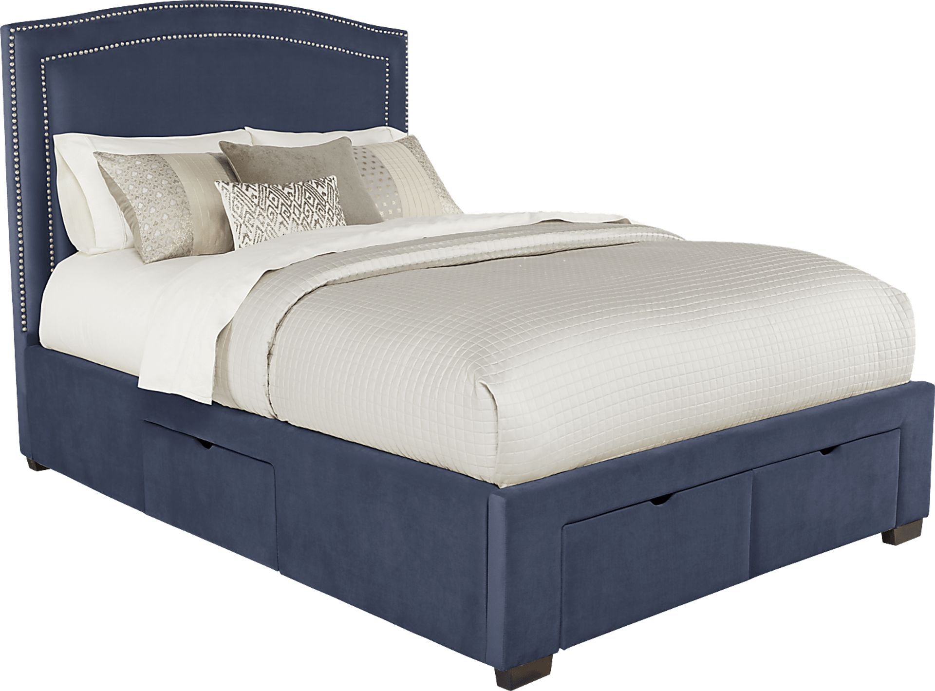 Loden Navy 3 Pc King Upholstered Bed With 4 Drawer Storage