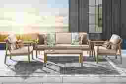 Logen Natural 3 Pc Outdoor Seating Set with Beige Cushions