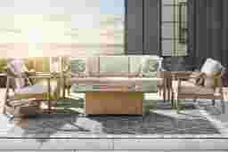 Logen Natural 4 Pc Outdoor Fire Pit Seating Set with Beige Cushions