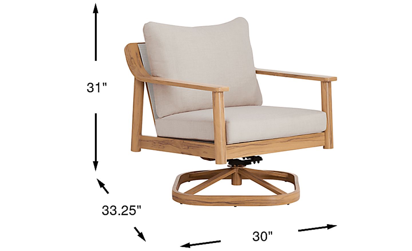 With refinement in every nature-inspired note, the elements of the Logen swivel chair blend together in harmonious style. This piece features a weather-resistant aluminum frame in a lifelike woodgrain finish, with beige upholstery that offers comfort in a durable outdoor fabric. Soothing swivel and rocking functions offer additional ways to unwind.