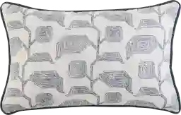 A knife edge refers to a clean, crisp finish where the front and back fabric panels are sewn together directly without additional piping or trim. This creates a streamlined, contemporary silhouette that highlights the intricate geometric pattern and ensures the focus remains on the elegant slate blue and white design.