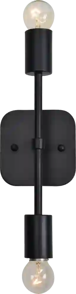 A matte black finish makes this Loma Trace wall sconce effortlessly modern. Exposed light bulbs on opposing sides of the iron base provide unobstructed brilliance in every direction. A decorative lighting option for powder rooms, living rooms and foyers, this glamorous wall accent light can be mounted horizontally or vertically to illuminate walls where it's most required. Requires 2 Incandescent E26-base, 60 Watt bulbs. Professional installation is recommended. Customer assembly required.