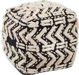 The handwoven construction of this pouf adds a rich, textural element that machine-made pieces often lack. The high-contrast black geometric pattern provides a sophisticated focal point that complements modern, bohemian, or transitional styles. In interior design, pieces like this are used to "anchor" a room, providing a visual break from solid-colored upholstery while adding a layer of craftsmanship and organic warmth to the space.