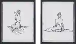 The Loreli 2 piece framed wall art set, offers an elegant modern touch to your home decor. A printed sketch of a woman is beautifully displayed under glass on deckled edge paper of each wall art, creating a sophisticated look. The black frames add a bold contrast to highlight the figure in center, while two D-rings on the reverse make each 17x21 contemporary wall art easy to hang. Simple and elegant, this floating frame wall art brings beauty and grace to your home decor.