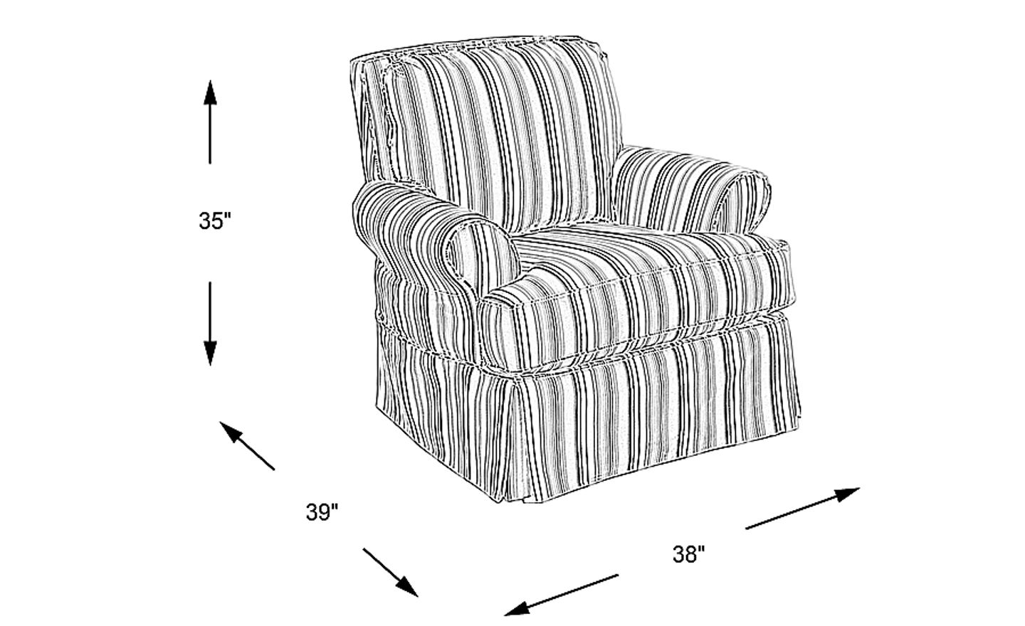 Like an umbrella on the beach, the Lot Navy accent chair adds a splash of color to the room. Quality manufacturing, and traditional design elements including rolled arms and a skirted base, ensure years of delight. A loose back pillow, thick T-cushion seat and soft cotton upholstery in cheerful blue, green and cream colored stripes, provides lasting seating comfort. 100% Cotton