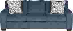 Covered in navy colored chenille fabric, the Lucan sleeper sofa creates a transitional look with a cozy vibe. Low track arms and three back cushions create a lovely silhouette, while block feet add a sleek look. Sinuous wire seating and foam filled seat cushions make it an outstandingly supportive and comfortable seating choice. A Royale innerspring mattress folds out to accommodate guests, providing increased support and pressure point relief for a comfortable night's sleep. Included jacquard print accent pillows add a fashionable touch. 100% Polyester.