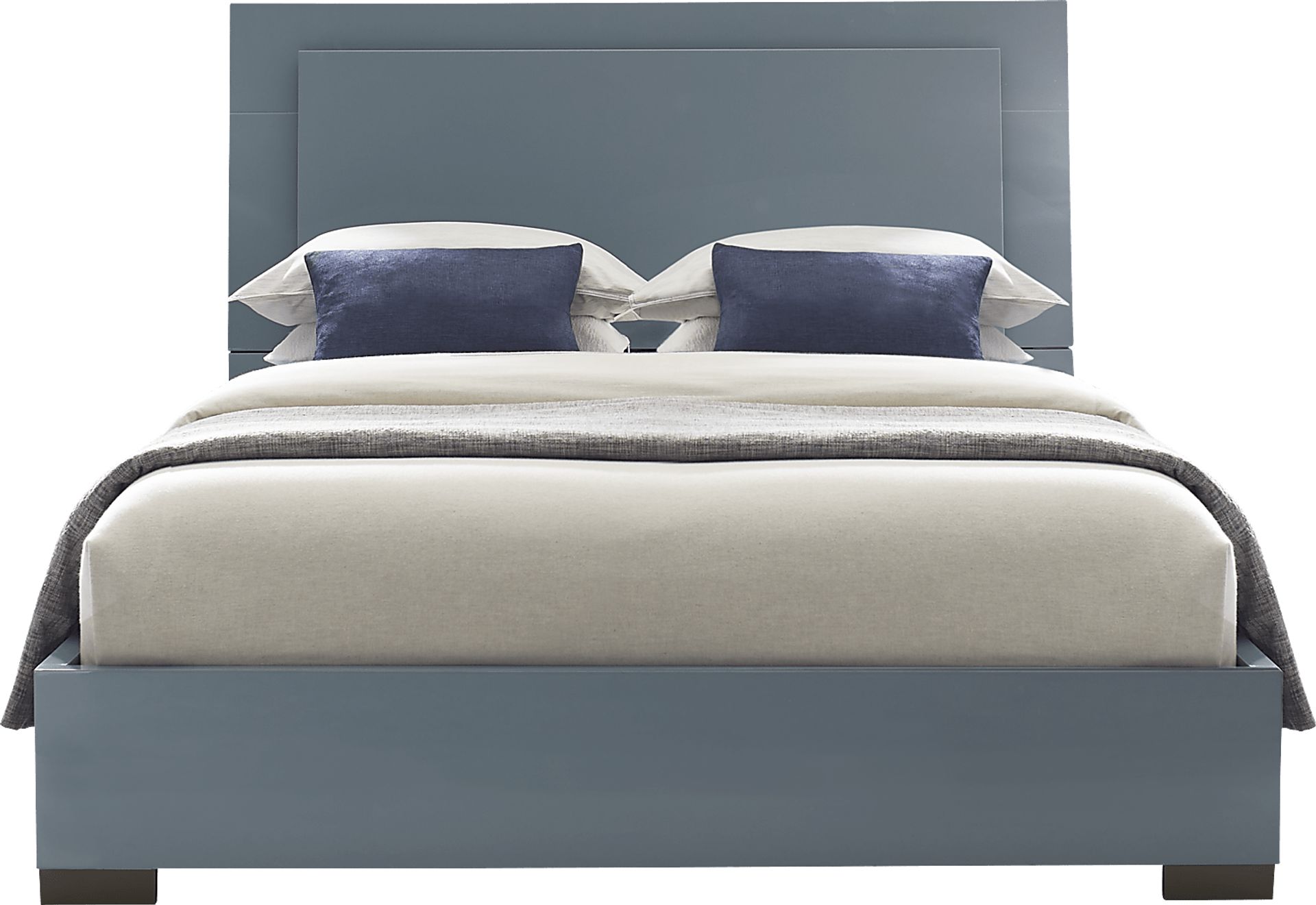 For anyone who's ever dreamed of living abroad, the Luma Vista bed is an impressive example of sleek European styling. Made in Italy, this contemporary bed is rendered in a high gloss blue finish and features a double panel headboard and low footboard. The bed's straight lines are crisp and clean, resulting in a truly sophisticated aesthetic. Mattress and foundation (if required) sold separately. Bed shown is queen size. Bed frames included.